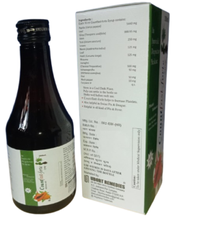 Papaya 5440 Mg, jwarghni 500mg, Aloevera 200 Mg, Ashavgandha 50 Mg, Giloye 999.95 Mg, Neem 125 Mg, Kiwi 50 Mg, Haldi 125 Mg, Tulsi 250 Mg, Black pepper 10 Mg. Syrup