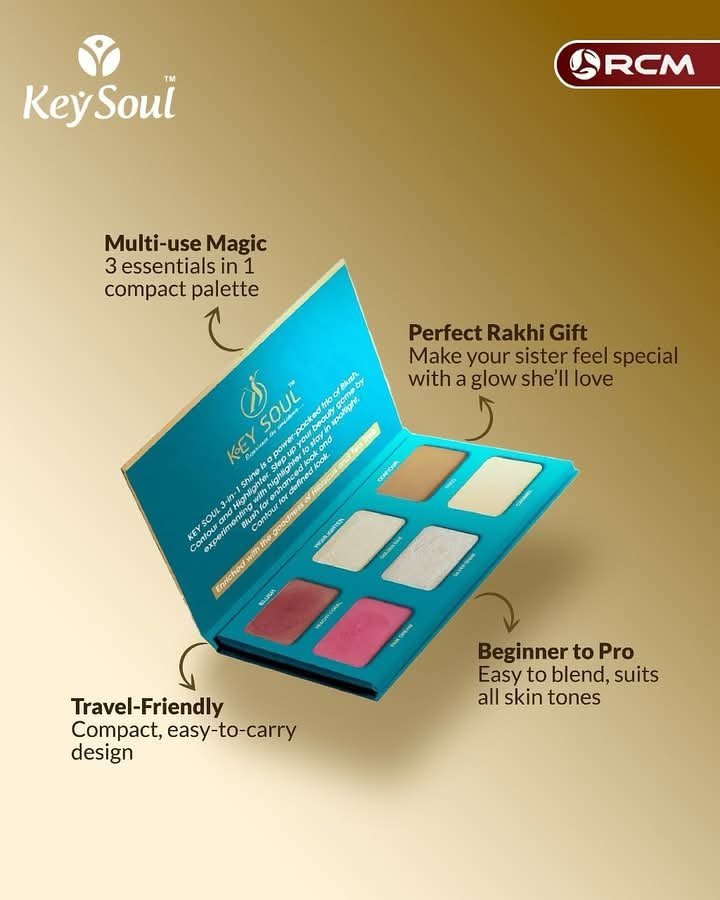 Key Soul 3-in-1 Shine is a power-packed trio of Blush, Contour & Highlighter. Step up your beauty game by experimenting with highlighter to stay in spotlight, Blush for enhanced look & Contour for defined look.