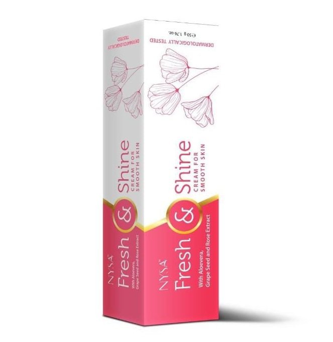 Ingredients in Nysa Fresh and Shine Cream like Aloe Vera is to soothe and to keep skin moisturized, Menthol supports skin feeling naturally fresh all day long. Presence of Rosemary extract is to reduce swelling and puffiness of the skin, whereas Grape seed extract is an option to help in reduction of appearance of Wrinkles and other signs of aging. Here is one more prominent ingredient Wheat germ oil increases cell turnover and collagen synthesis which helps to maintain skin elasticity and keep skin’s appearance fresh for a long time. It works in complete harmony with your skin to provide necessary support in protection from the harmful environment and helps to keep skin shiny, fresh and healthy day long.
