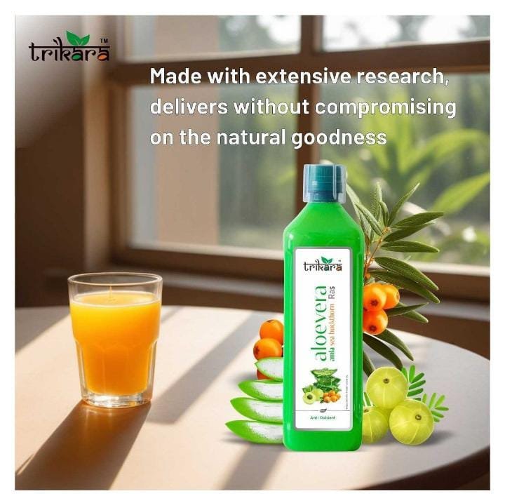 Experience a multitude of health benefits with regular use of Trikara Aloevera Amla Sea Buckthorn Ras:
