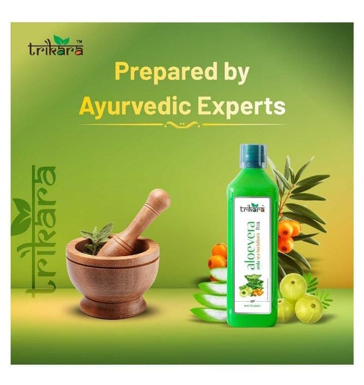 Trikara Aloevera Amla Sea Buckthorn Ras is an authentic Ayurvedic product crafted with natural ingredients known for their several beneficial properties. Each ingredient is carefully selected and processed to preserve its natural goodness, ensuring you receive the best of benefits in every dose.